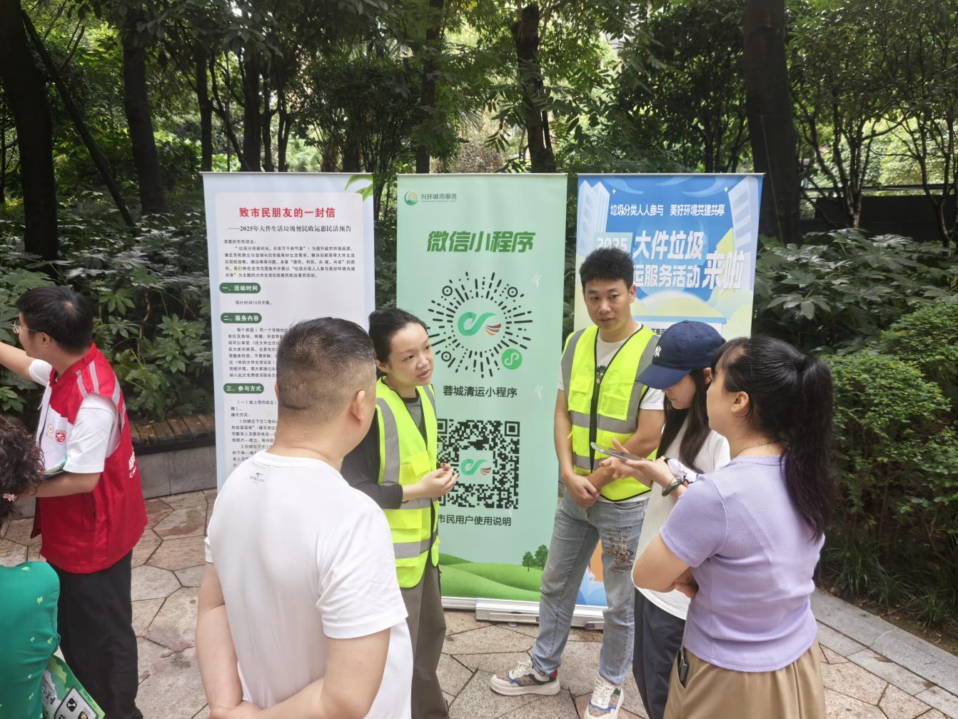 在金沙街道金沙云庭小区,首先进行了大件生活垃圾便民收运的宣传。工作人员详细介绍了大件生活垃圾的预约方式、收运时间、收运范围等具体内容,并向居民发放了融入垃圾分类知识的大件生活垃圾便民收运宣传手册。
