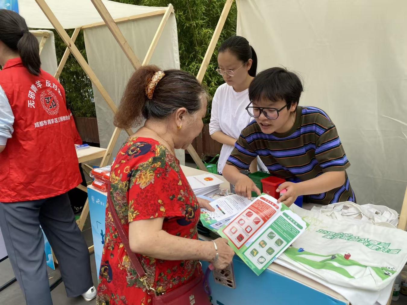 在成都市人民公园中心广场,主办方精心设置了垃圾分类知识展示区,借助宣传物料,图文并茂地展示了垃圾分类的重要性、各类垃圾的分类标准以及垃圾处理流程,吸引了众多居民驻足观看。
