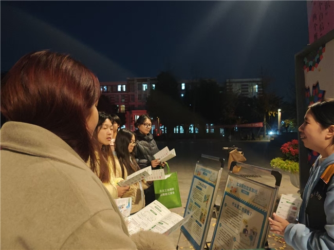 11月27日,大邑县人社局在四川电影电视学院开展“工伤预防政策进学校”宣传活动,该校110余名学生参与了活动。