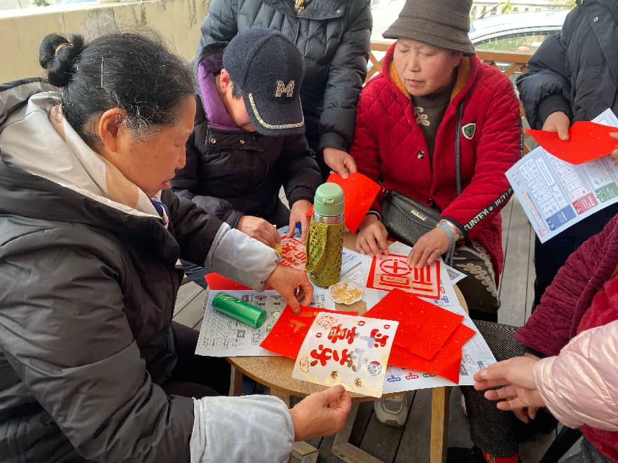 拓印送“福”环节人气十足。工作人员详细讲解了“覆纸要平、蘸墨要匀、轻拍要缓”的拓印技巧,手把手指导居民操作。居民们纷纷上手体验,指尖翻飞间,一张张墨香浓郁、寓意吉祥的新春祝福跃然纸上。大家捧着亲手拓印的“福”字,脸上满是喜悦,现场洋溢着浓浓的新春气息与传统文化韵味。