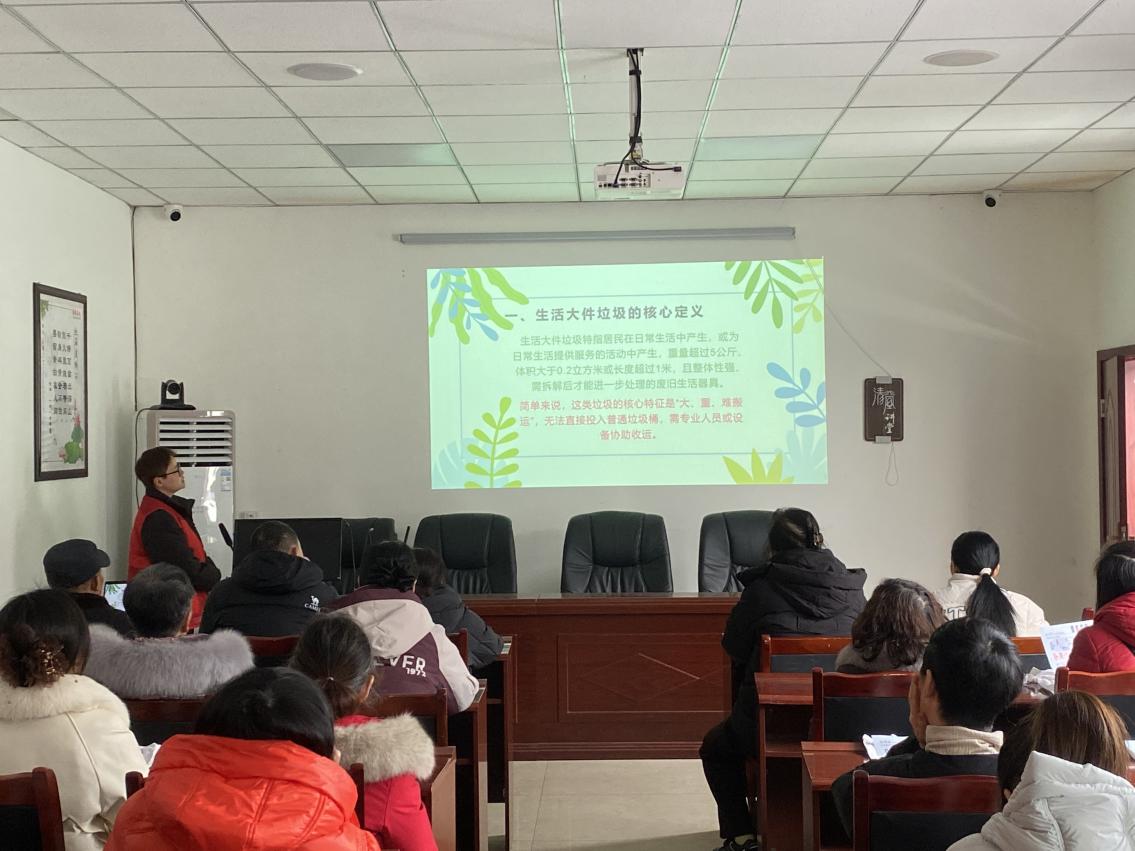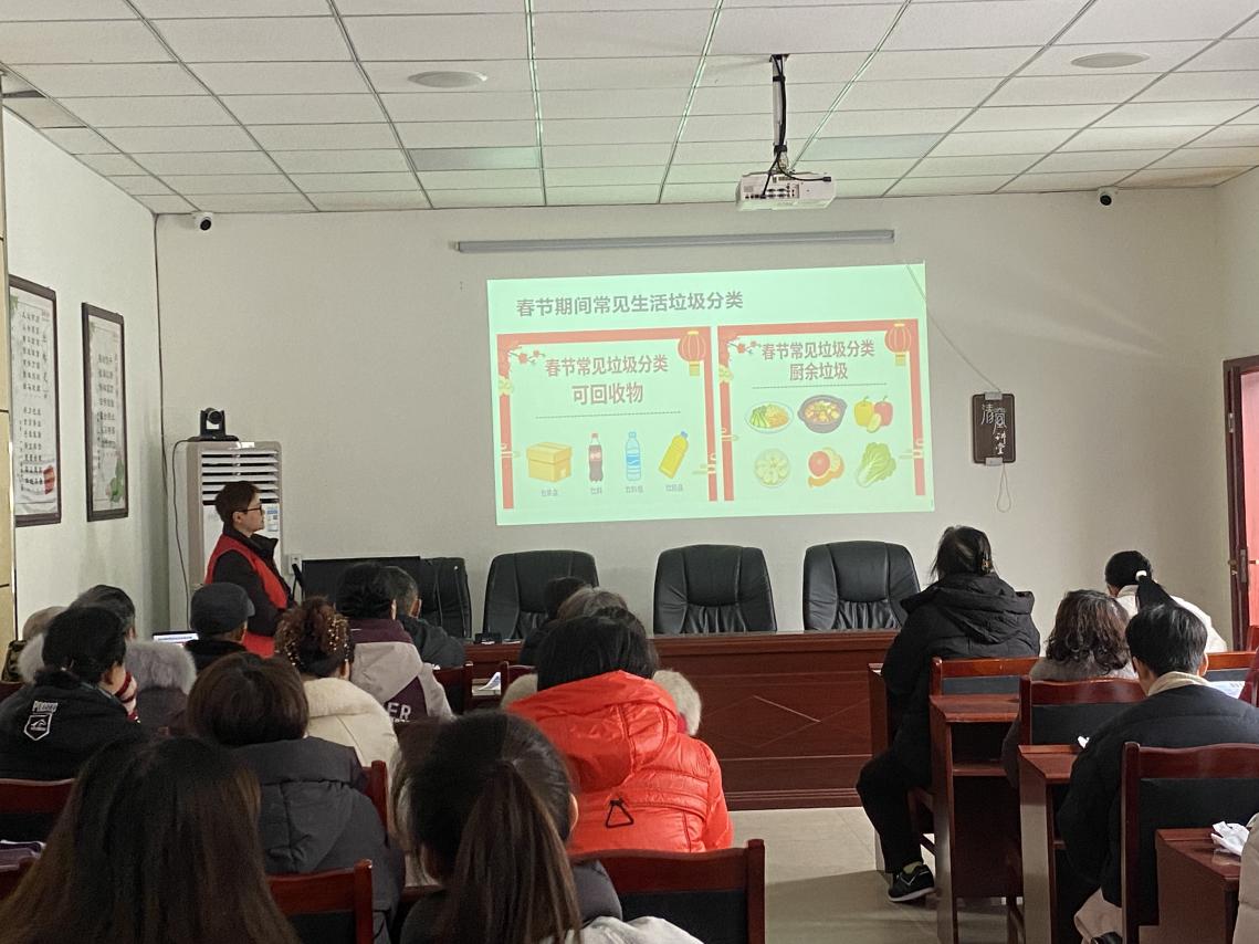 活动现场,工作人员首先引导参与人员有序签到入场,并发放生活垃圾分类宣传册。在知识培训环节,特别针对年货包装、餐厨残余、烟花爆竹废弃物等节日高频垃圾,明确分类标准,通过案例解析、易混品类对比等方式,帮助居民快速掌握区分方法,有效降低分类错误率。