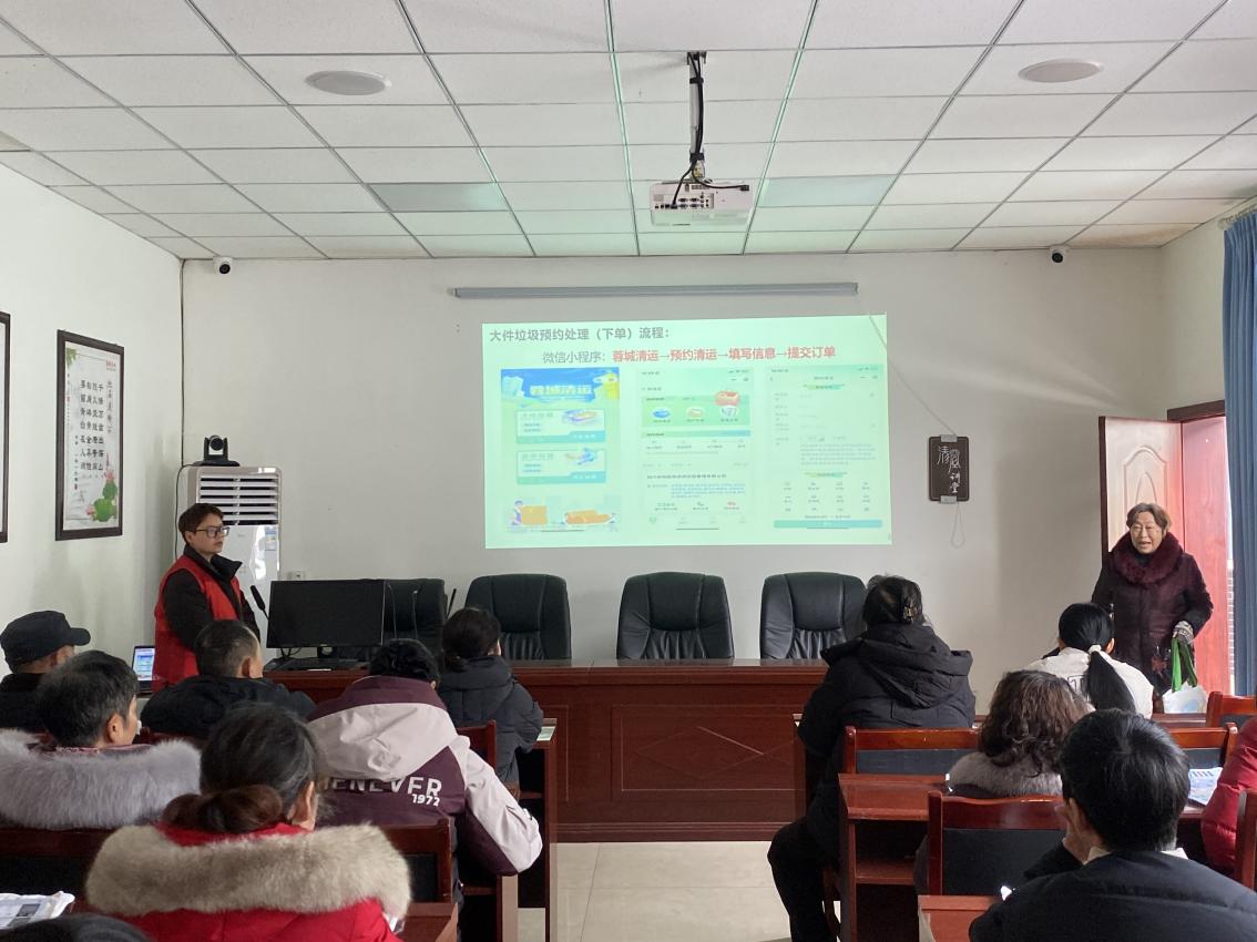 在蓉城清运平台实操教学环节,讲师采用“演示+互动”的模式,一步一步地教大家如何在平台上下单预约。考虑到老年群体的操作需求,讲师特意放慢节奏,反复演示关键步骤,并耐心解答大家的疑问。