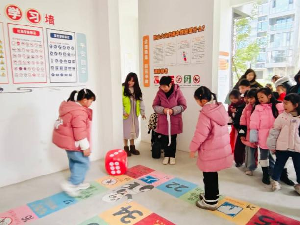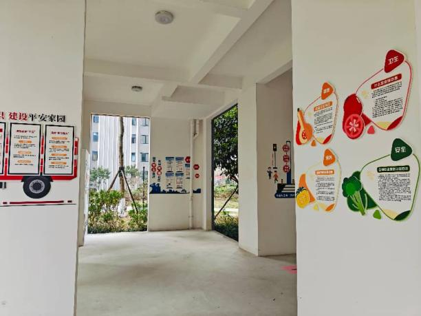 2024年小区入住初期,基于对治理工作的前置性评估,社区对后续将安置的居民进行了线上调研和实地走访。通过动态问需工作的落地,共收集到四百余条具体的服务建议。其中161条涉及小区空间阵地的建设和功能完善。在此情况下,社区联动居民骨干等各方资源,共同制定了对1号地块5栋架空层的营建方案。在各方的支持下,将楼栋架空层划分为亲邻文化展示区、老年文化展示区、儿童文化展示区、安全宣传体验区四大功能区域。其中安全宣传体验区为核心,设置消防、居家、交通、网络安全等多领域安全知识图文墙与趣味互动游戏,实现安全知识前置宣传。各功能区按需配置休憩座椅、益智玩具等设施,精准匹配不同群体的前置需求。