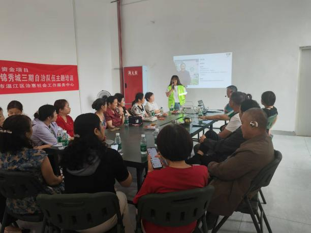 锦秀城三期自组织队伍建设秉持“挖掘本土潜力、聚焦实战赋能”原则,通过“招募+推荐+自荐”三维路径组建培育,从初期60余名报名居民中筛选35人组建首轮自治队伍,经多轮培育优化,当前核心成员稳定在38人,涵盖退休人员、在职职工、个体商户等多元群体,人员结构兼具经验与活力。为提升队伍专业治理能力,社区针对性开展自组织发展规划、小区自治经验学习等多主题培训,且队伍已于2025年3月完成正式备案。如今,自组织队伍已成为小区公共事务推进的核心抓手,为社区自治提供坚实人力支撑。