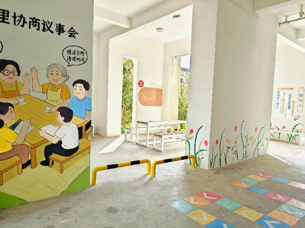 2026年1月结合D2-5栋居民民意前置征集结果,启动该栋架空层网格阵地可视化营造规划设计,以“微网实格建设+协商议事功能”为核心,融入休闲娱乐、共享工具、儿童游玩等居民认可的实用板块,按照“功能布局可视化、组织架构显性化、服务信息公开化”思路,规划设置协商议事区、服务功能区、休闲区三大区域,配套会议桌椅、公示板、共享工具柜、便民服务指南等设施,打造集微网格议事、前置服务、日常休闲于一体的网格治理实体枢纽,实现微网实格服务资源前置整合。